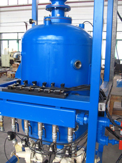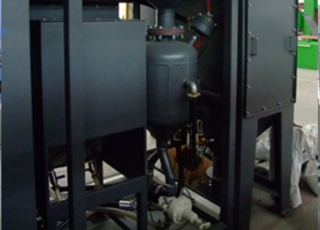PLC自動(dòng)擺動(dòng)噴砂專機(jī)—以一個(gè)巨型的壓力缸供砂給多支噴槍,噴槍以旋轉(zhuǎn)擺動(dòng)的形式移動(dòng)。這種表面處理方式與旋轉(zhuǎn)噴頭自動(dòng)專機(jī)相同,也適用于處理形狀較復(fù)雜的零部件。以上的專機(jī)附加有上下擺動(dòng)噴槍,對(duì)工件內(nèi)表面同時(shí)進(jìn)行噴砂處理,把原本2小時(shí)才能完成的工作縮短為半小時(shí)。